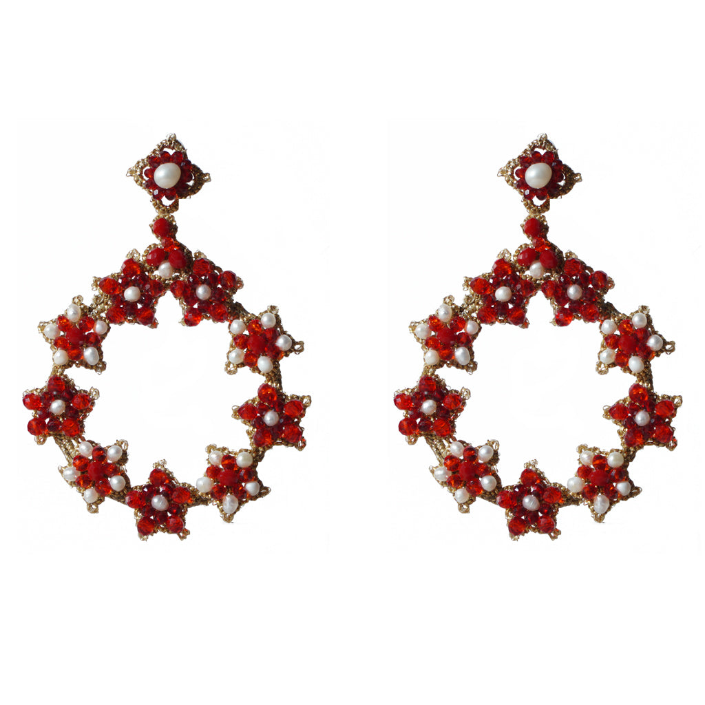 Earrings entirely handmade with the ancient tatting lace technique (Pizzo Chiacchierino).