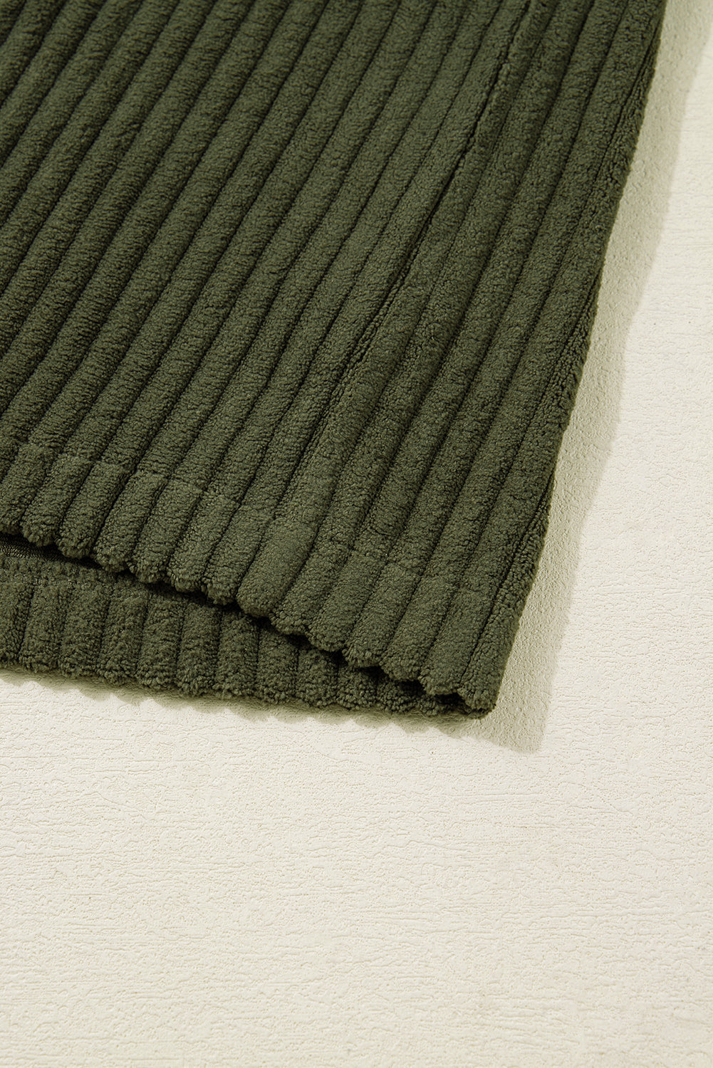 Plaid Patchwork Sleeve Button-Up Ribbed Fleece Jacket